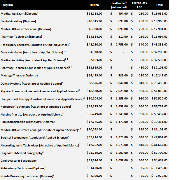 Tuition and direct expenses vary by program and are listed above. The indirect expenses below are based off a monthly average and may be prorated when academic years are shorter or longer. Indirect expenses reflect an average cost of the components that fall within the category. For additional cost of attendance budgets please contact the Financial Aid office.